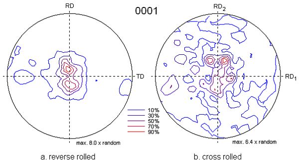 pole-figures of a cross-rolled AM20 magnesium sheet.